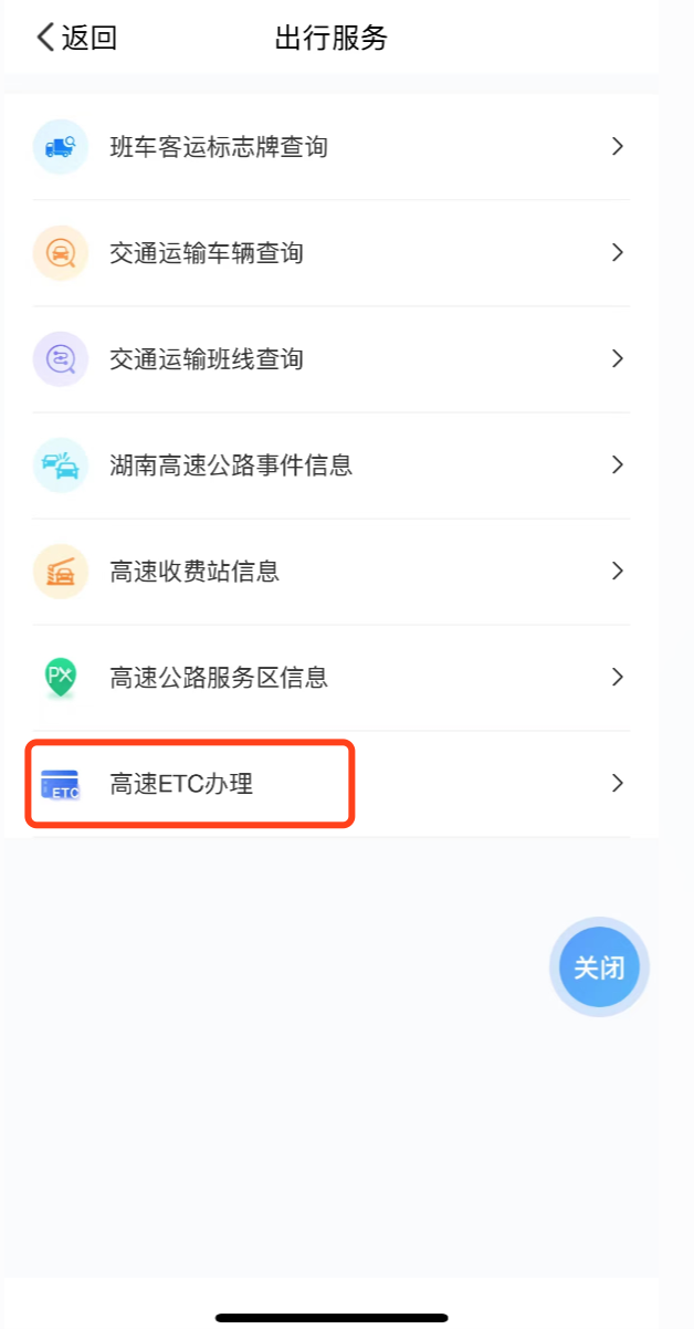 “高速ETC办理”服务操作指引
